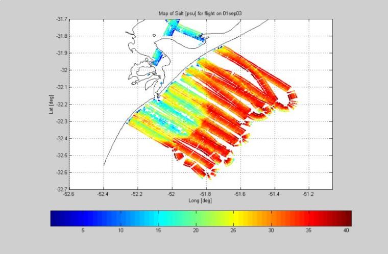 Mapa de salinidad obtenido por el STARRS de la desembocadura de la laguna de los Patos